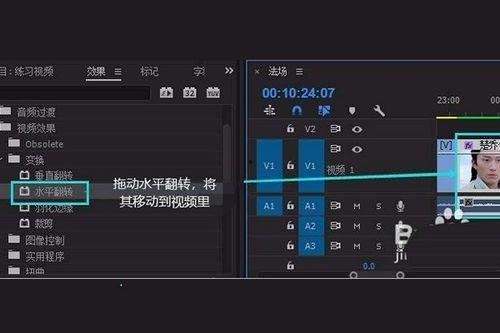 - 在效果列表中找到“视频效果”,然后选择“翻转”。